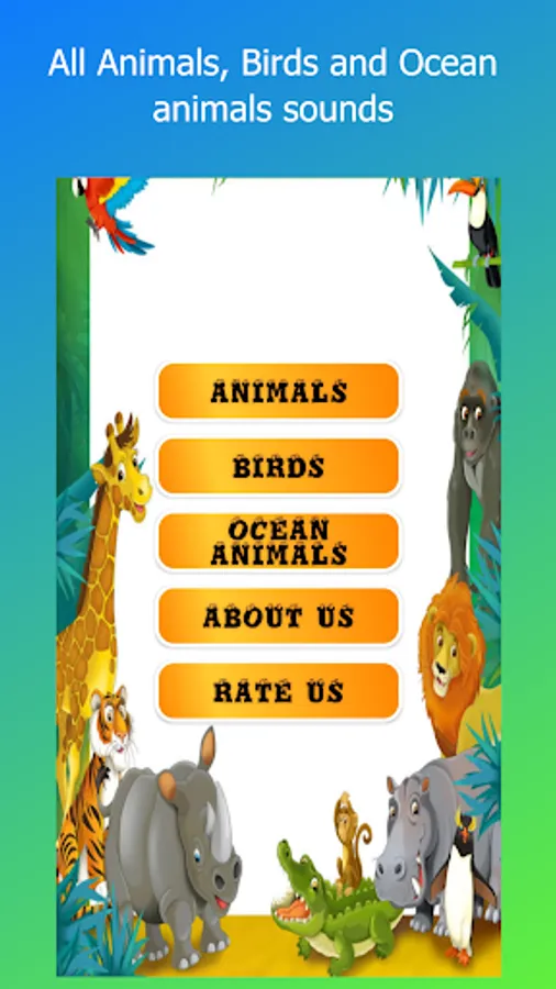Includes all Animals, Birds and Ocean animals pictures and sounds in single application.