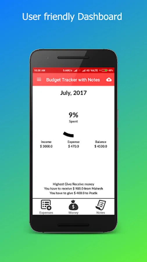 Feature 'Friends Money Tracker' manages money transactions with your friends.