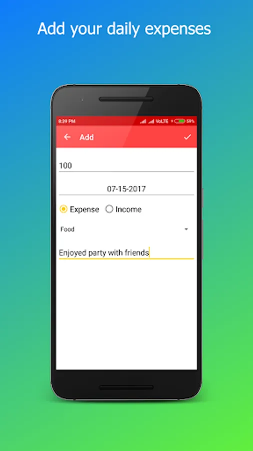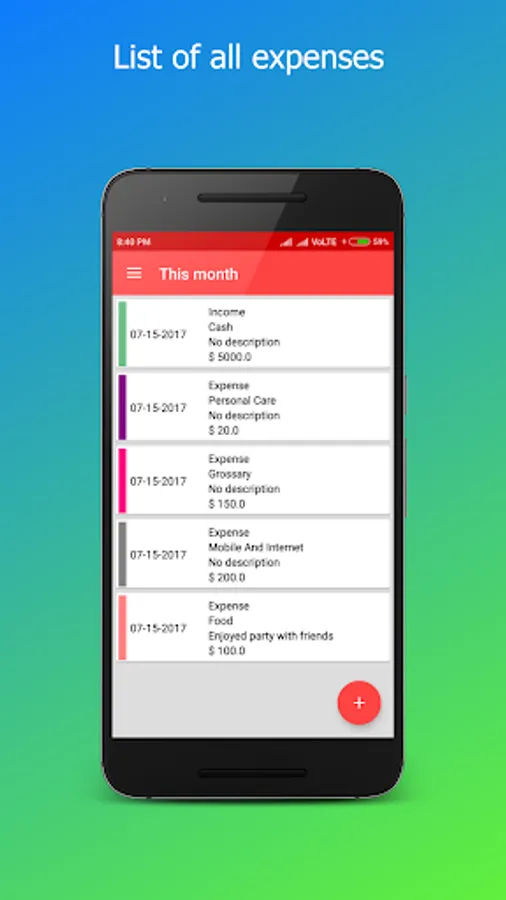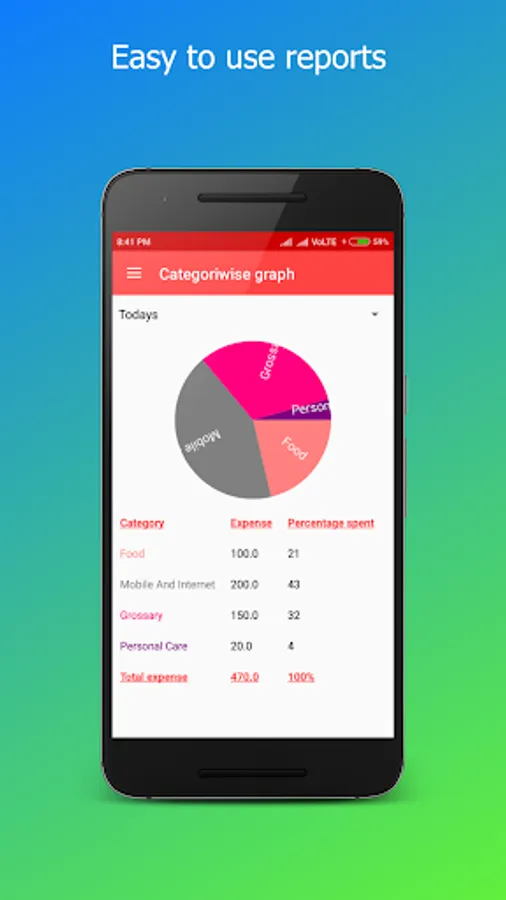 User can add income/expenses on daily basis. App shows reports of current month and month wise.