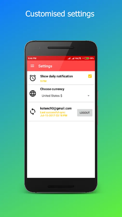Now don't worry about your application data, just use Sync feature. We will save all your data on your Google account. When your device lost or something bad happens, You simply have to use Sync feature in your new device. App will provide all your data from your last sync.