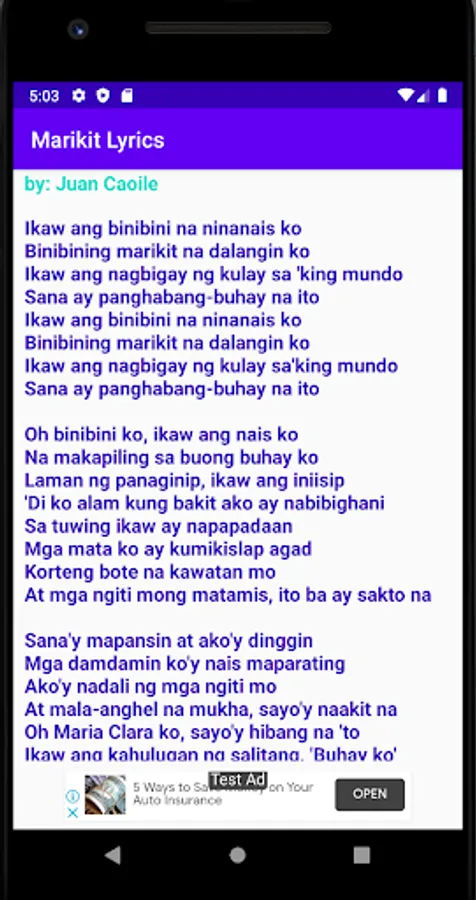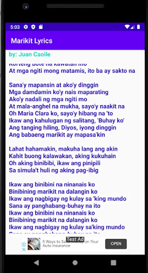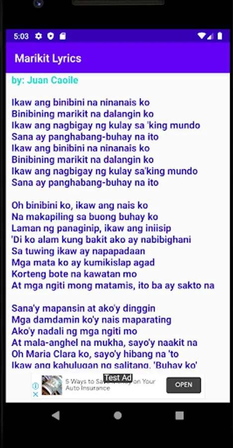 Full lyrics of the song "Marikit" by Juan Caoile.