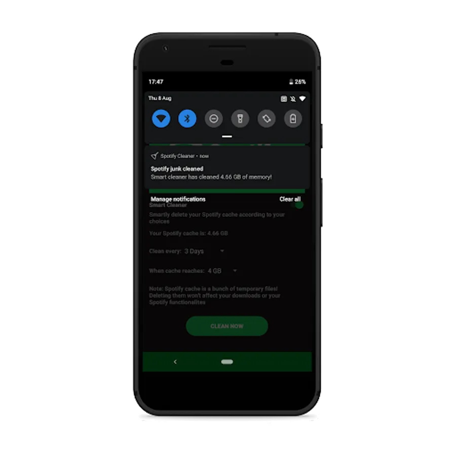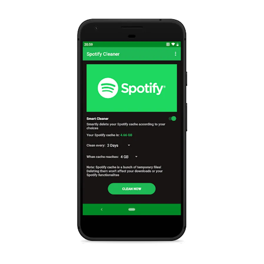 Spotify cleaner app was born from a personal need of managing smartly the Spotify cache which was eating over 10gb of my phone memory!