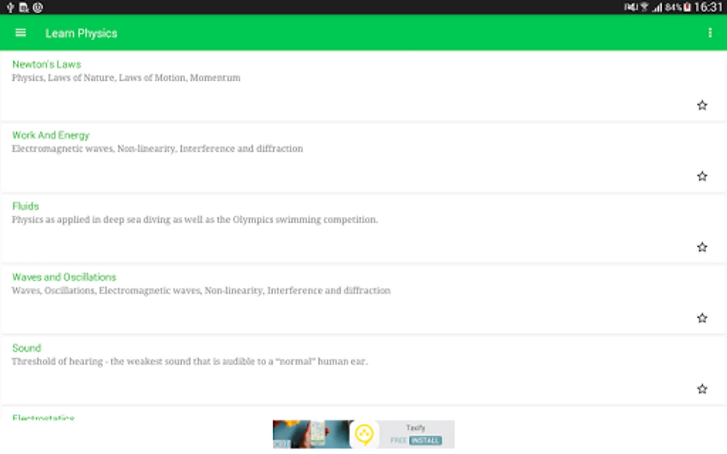 Learn physics is a mobile app, professionally tailored for the study of physics, made from research scientist, professors, and students.Learn physics is a novice to professional guide to theoretical physics, angular velocity, electronics, mechanics and optics among other amazing physics topics.