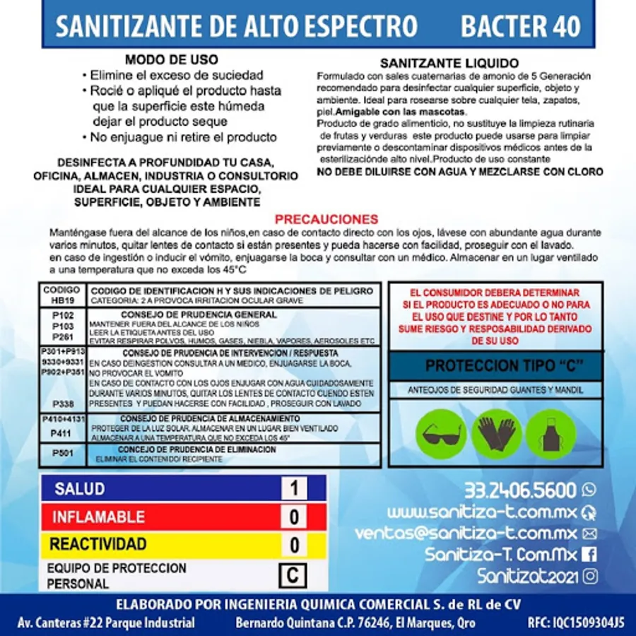 Endorsed by: FDA, Cofepris, ISSA, EPA.