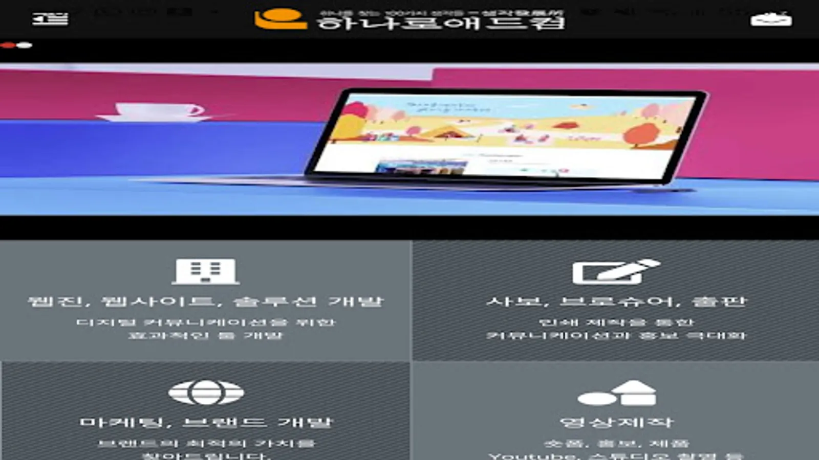 This app contains the company website of Hanaro Adcom. Hanaro Adcom is a company that analyzes customers' companies and creates magazines, webzines, and videos. Inside the app, there is an introduction to Hanaro Adcom and the work that has been done in the form of a portfolio, and there is a contact us tab where you can send short introductory videos and emails.