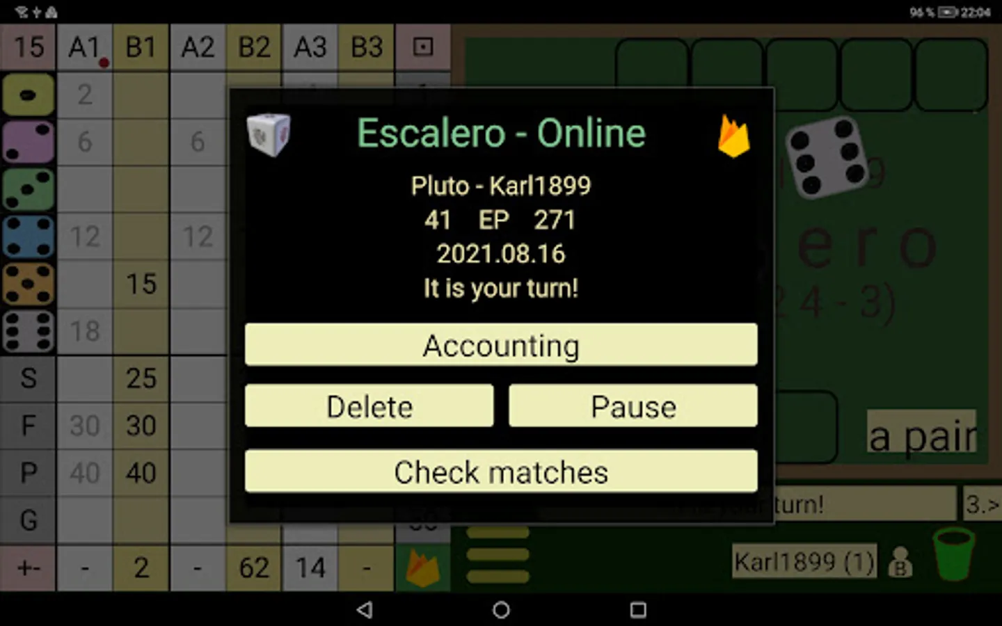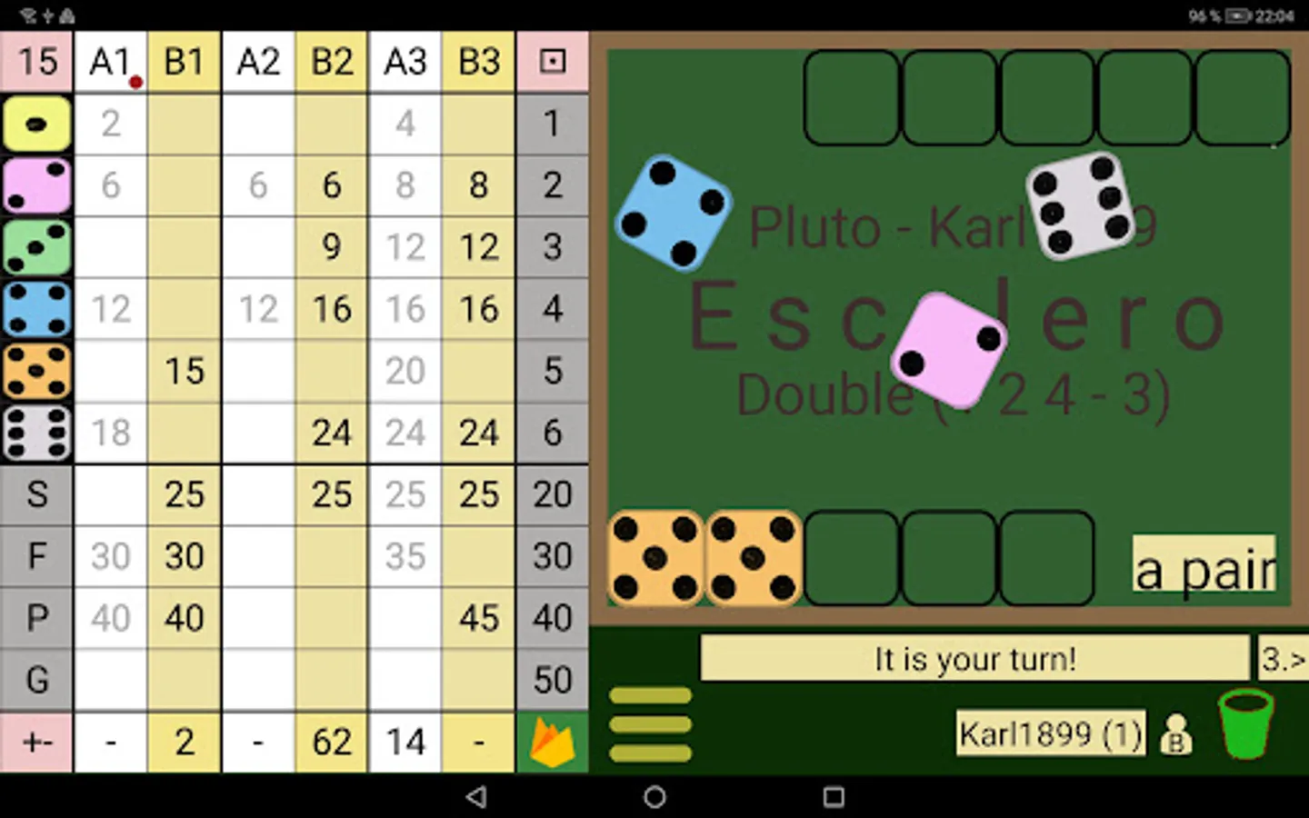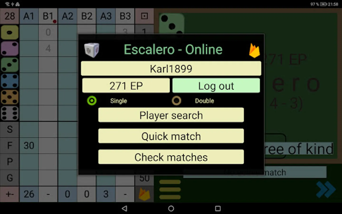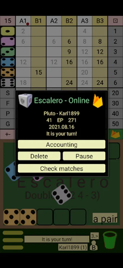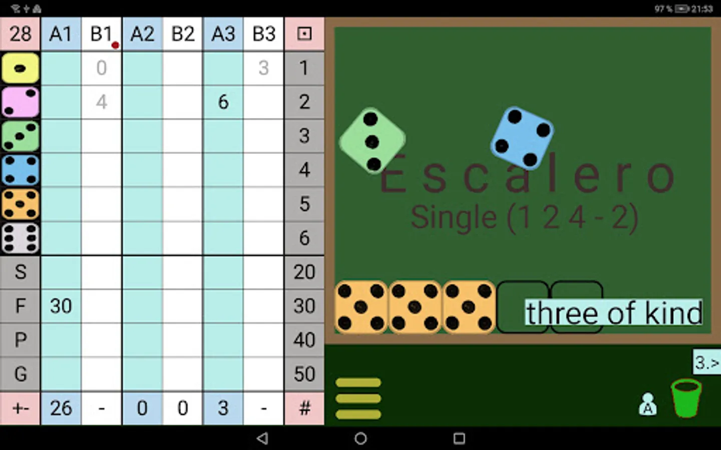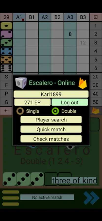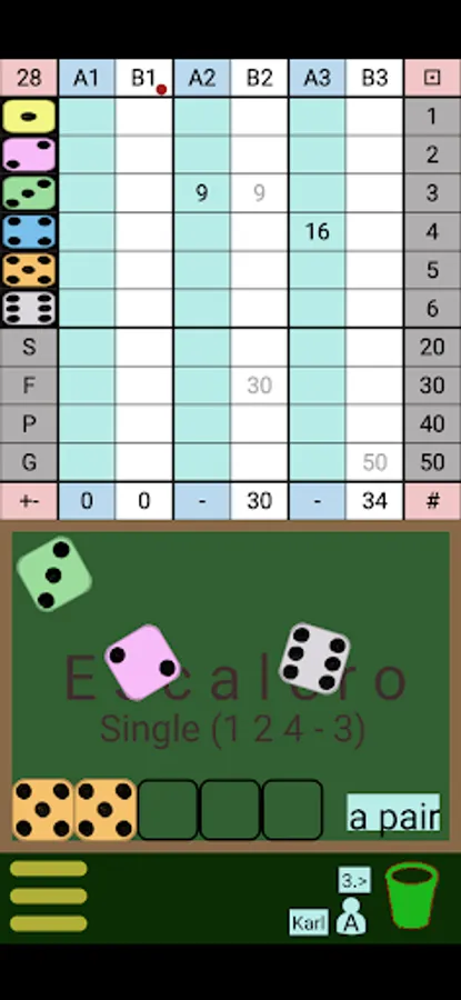 Escalero is played with a set of five dice. The game can be played online or offline.