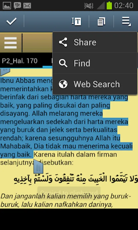 The contents of the content within apps Complete Tafsir Ibn Kathir may be shared so that users can easily share the content that is important to my friends.