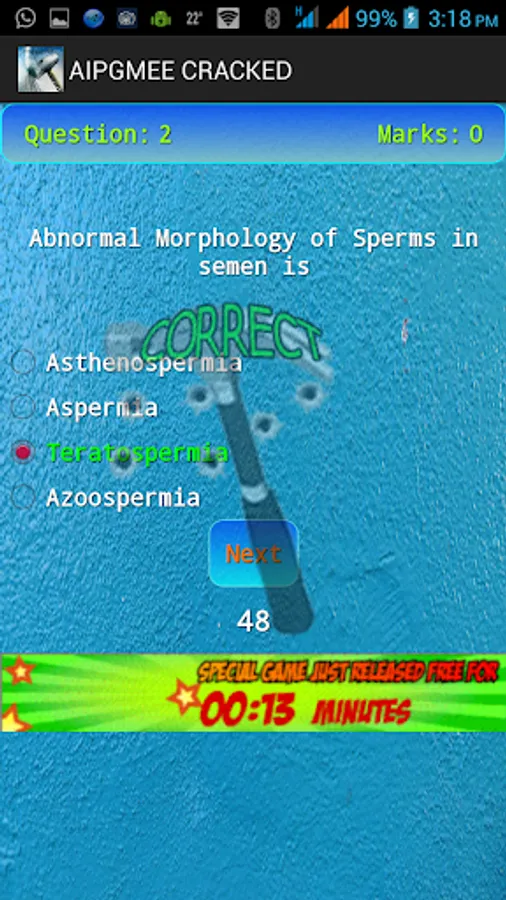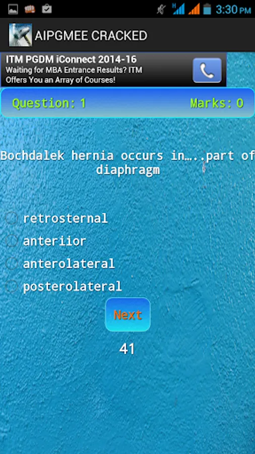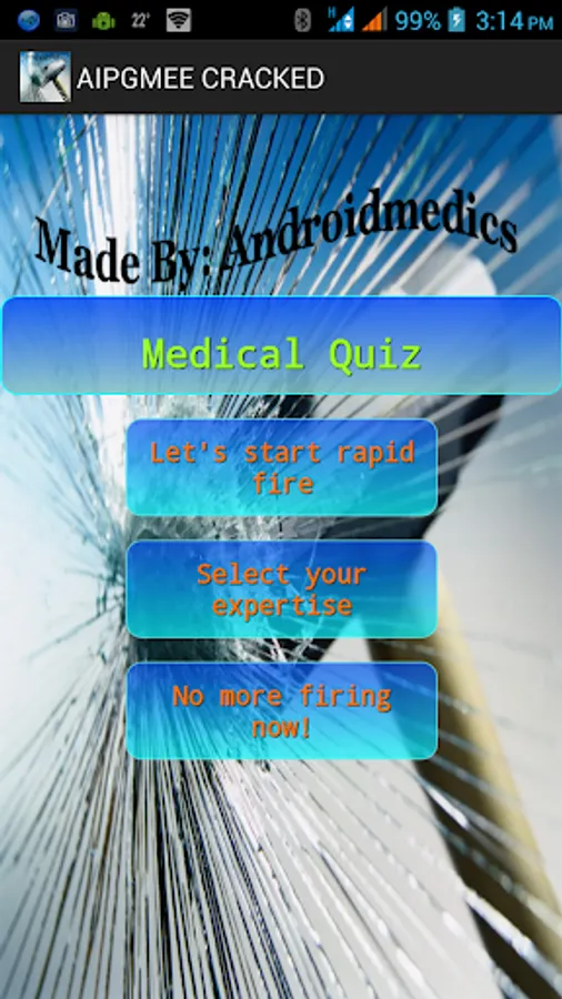 Medical Quiz application for all students appearing for any sort of medical entranc exams like AIPGMEE , AIIMS MD,MS,DNB,DM,MCH. Learning has never been show easy. This quiz contains of multiple choice questions with four options and one correct answer. Learning would be so easy and fun as there are various interesting sound effects and beautiful layout.You would be asked questions of any difficulty level randomly from any topic related to medicine.The most commonly and important questions that have been asked in various entrace exams have been selected.