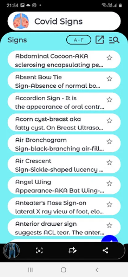 This is world's only android application on Radiological Signs.We have included almost all common signs seen in routine radiological investigations like X-Ray,CT scan,MRI,Ultrasonography and nuclear imaging..