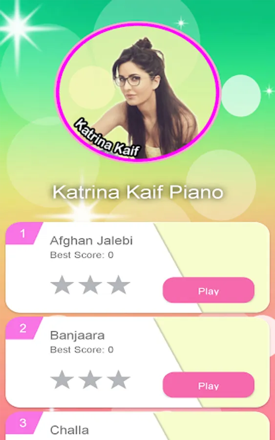 Katrina Kaif Piano Magic Tiles is one of the music games that you can enjoy, in this Piano Game you don't need to be experienced, you just need to improve your IQ skills and finger speed and feel the beautiful rhythm of the music from the album of your favorite Katrina Kaif songs!!