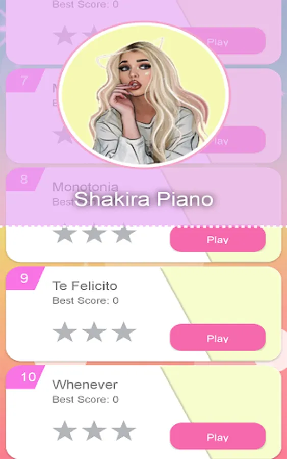 Shakira Piano Magic Tiles is one of the music games that you can enjoy, in playing this Piano Game you don't need experience, you just need to improve your IQ skills and finger speed and feel the beautiful music rhythm from your favorite album of Shakira's favorite songs of your choice!!