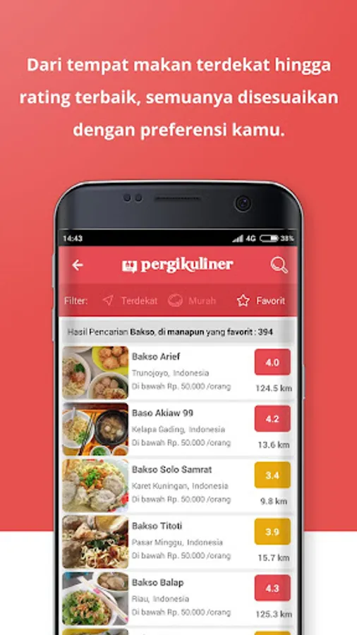 PergiKuliner ingin menjadi teman kamu untuk mencari kuliner enak di Jakarta, Bogor, Depok, Tangerang, dan Bekasi, Bandung, dan Surabaya. Maka itu PergiKuliner melengkapi diri dengan review, alamat, no telepon, jam buka dan peta. Kamu pun bisa share info bermanfaat tentang restoran dan makanannya ke sesama teman PergiKuliner sehingga bisa saling membantu dalam menemukan tempat makan terenak di Jakarta, Bogor, Depok, Tangerang, dan Bekasi, Bandung, atau Surabaya.