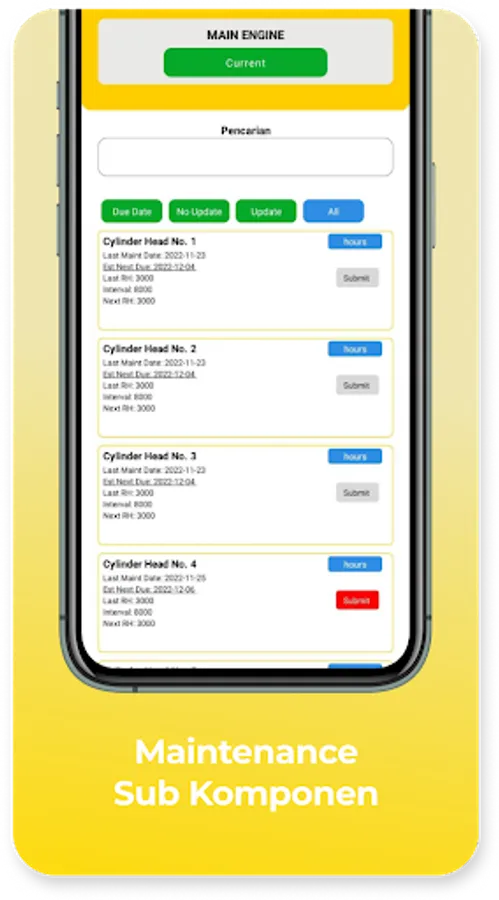 This application helps the process of monitoring or maintaining engine/deck components on ships, cars and heavy equipment by providing photos and information on work performed