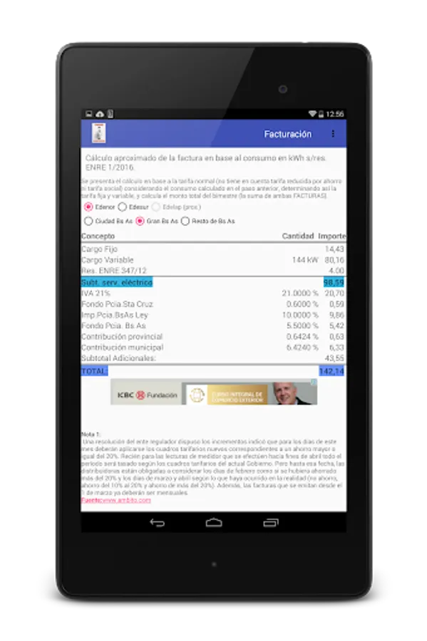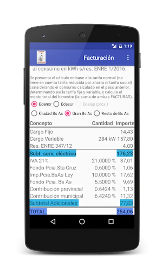 - Note (*): the calculation is only valid for Province of Buenos Aires. Only considered the normal rate. (We do not consider social tariff or savings). Valid residential rate.