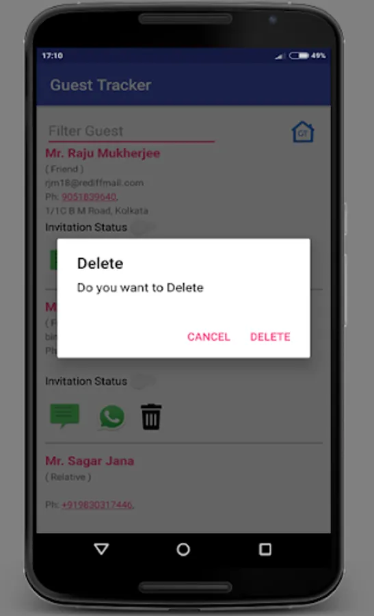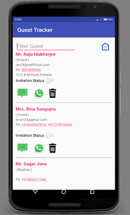 Also, it allows you to invite guests via call, message, email or whatsapp directly from the app and you can track invitation status.