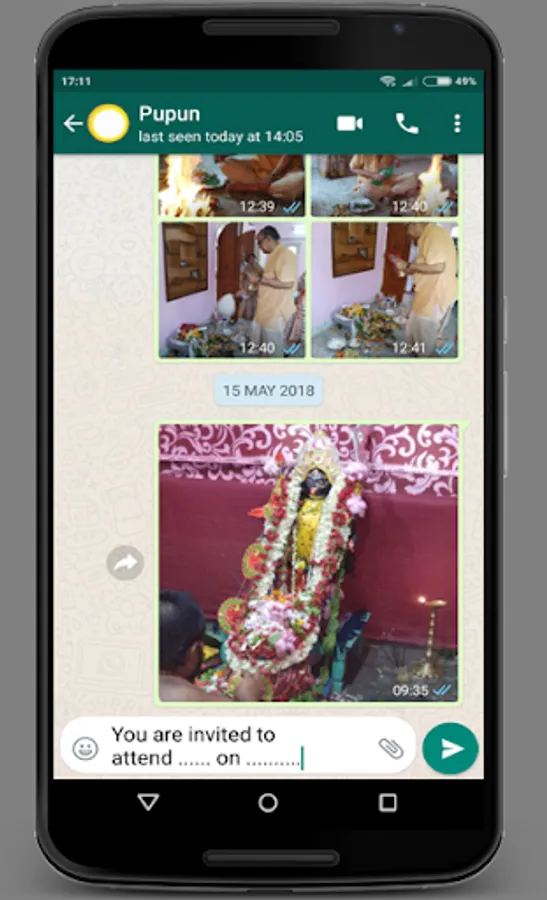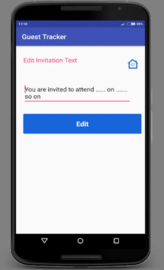 There is an option to edit invitation text which will be sent via message, email or whatsapp.