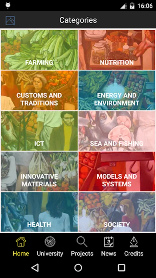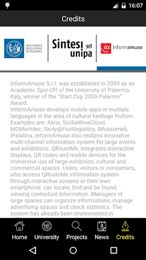 The app shows the overview of the academic surveys of the University of Palermo, not only in agronomic field but also in the areas of health, sea and fishing, energy and environment, ICT, customs and traditions.