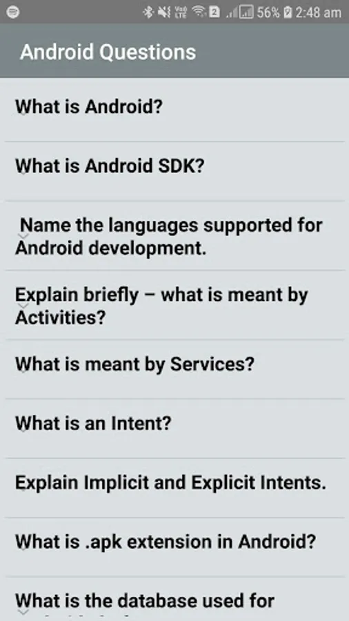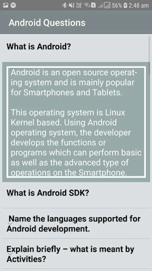 This application Contains some of the regularly asked questions in the interview in c,c++, java, and Android Development. Now don't worry for the last minute preparations of your interviews. Have a read to all the questions before the interview and you are good to go