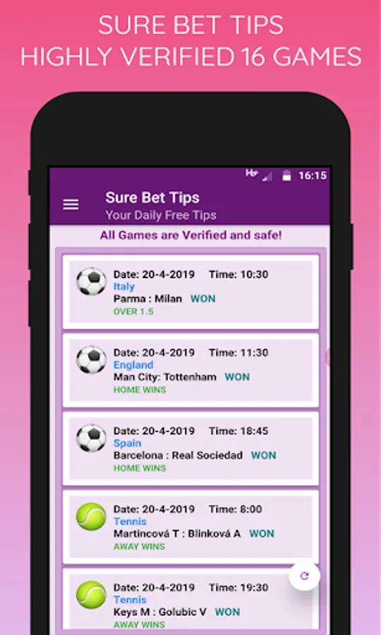 Sure Tips App brings you the best daily sports predictions with high success rate.