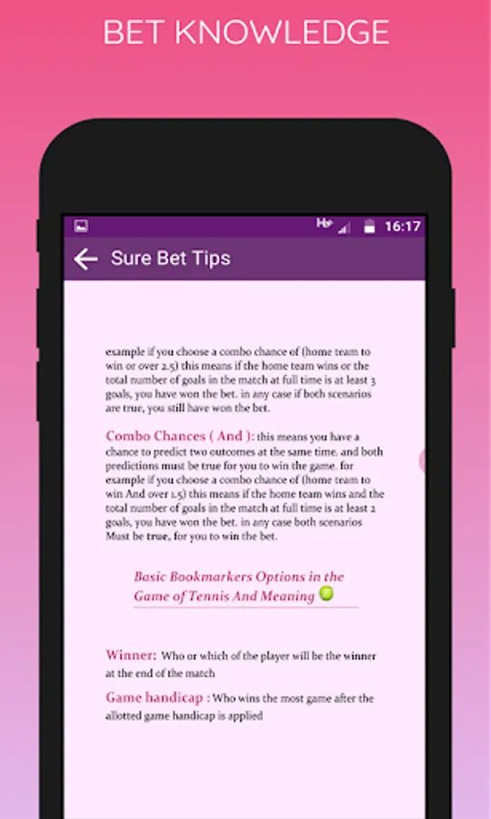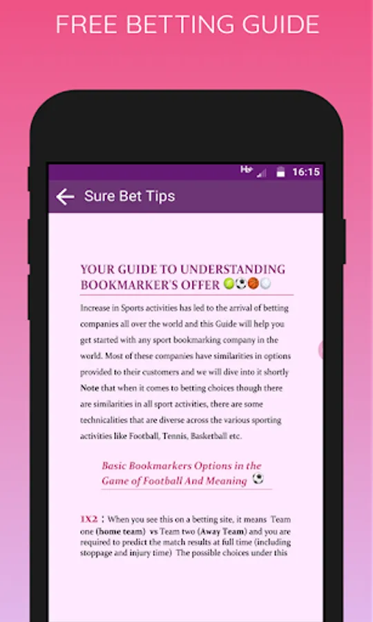 Note: The Free Bet Guide book in the App is available for devices with Android Os version 5 and above only. Thank you!
