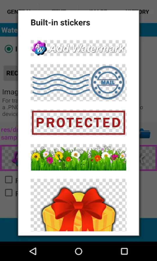 • Easy selecting of recently used watermarks