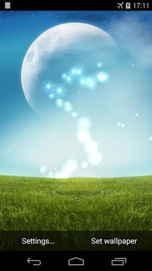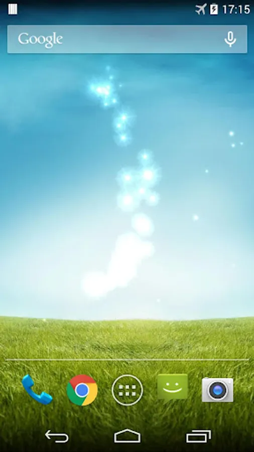 Greenfield Live Wallpaper, floating balloons with light particles and clouds.