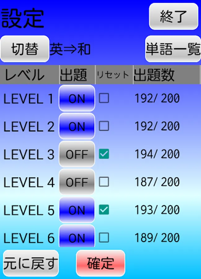 「チョイスモード」機能により、すでに覚えている単語を省いて学習できます。
