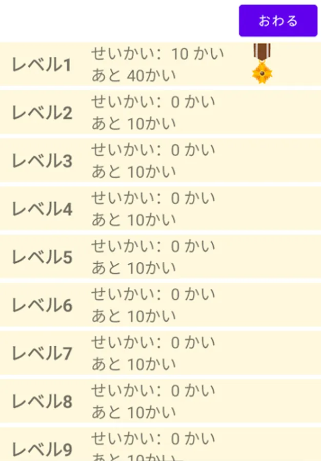 If you answer a lot correctly, you will receive a reward (medal) for each level.