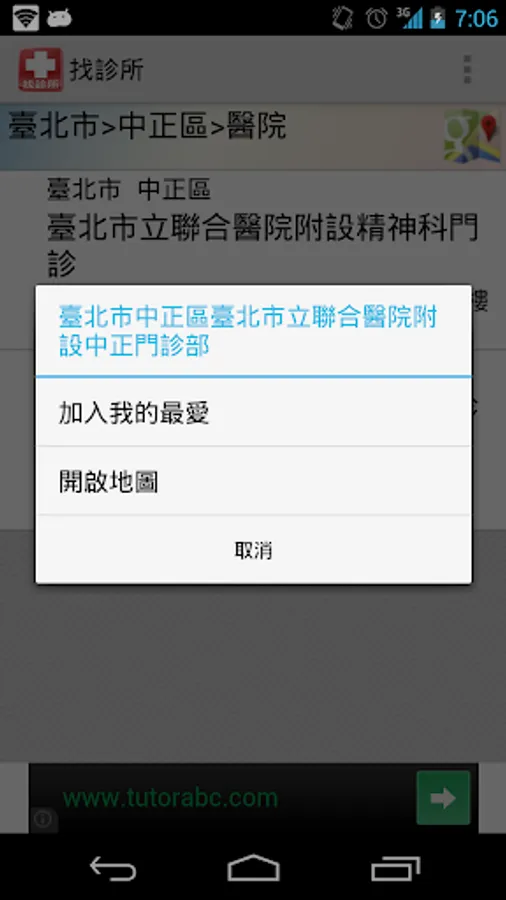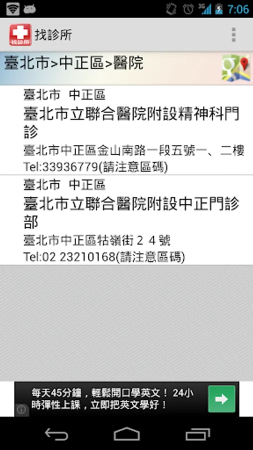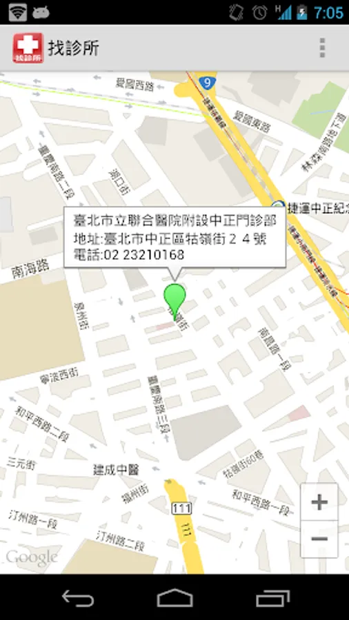提供民眾診所之名稱、電話及地址,經緯度(地圖顯示),導航功能