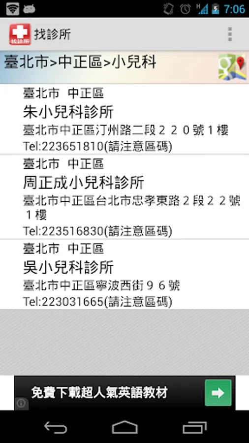 最棒的是,除了提供民眾診所之名稱、電話及地址之外,還依經緯度用地圖顯示診所位置,方便民眾查詢就醫資訊。全台超過2萬筆的診所正確資訊,不僅功能強大、又實用,「找診所」APP將成為您生活上的好幫手!