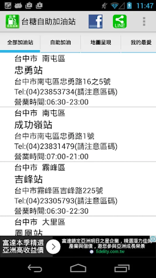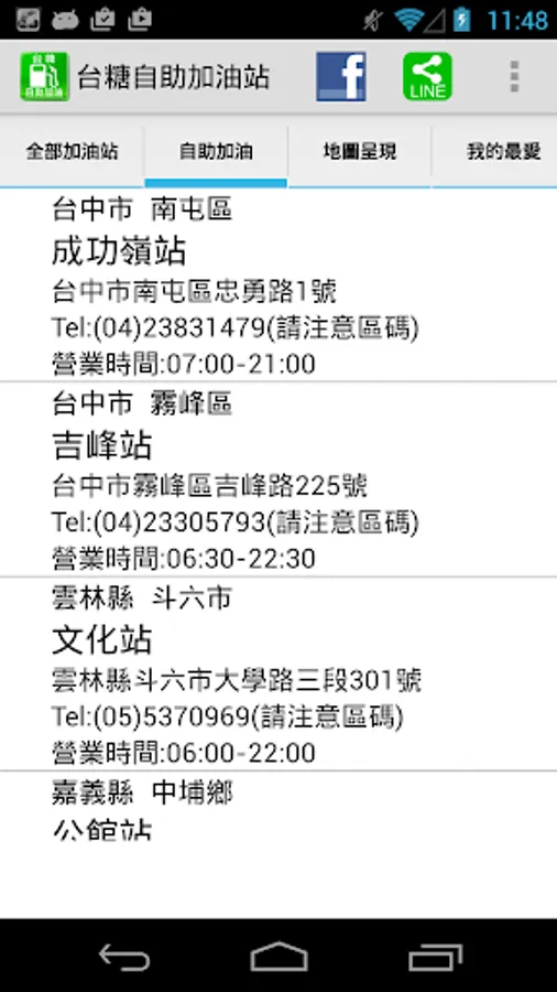 提供台灣各地區台糖自助加油站名稱、電話、地址、方便民眾查詢加油站資訊。