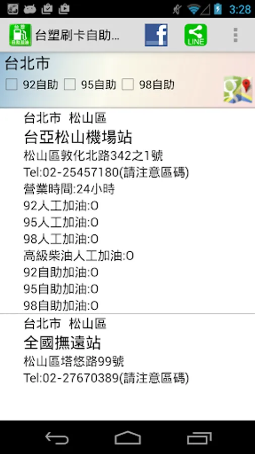 提供台灣各地區台塑刷卡自助加油站名稱、電話、地址,方便民眾查詢加油站資訊。