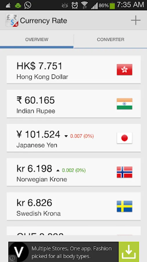 Currency Rate is a powerful app offering live currency exchange rates. It also has the currency converter.
