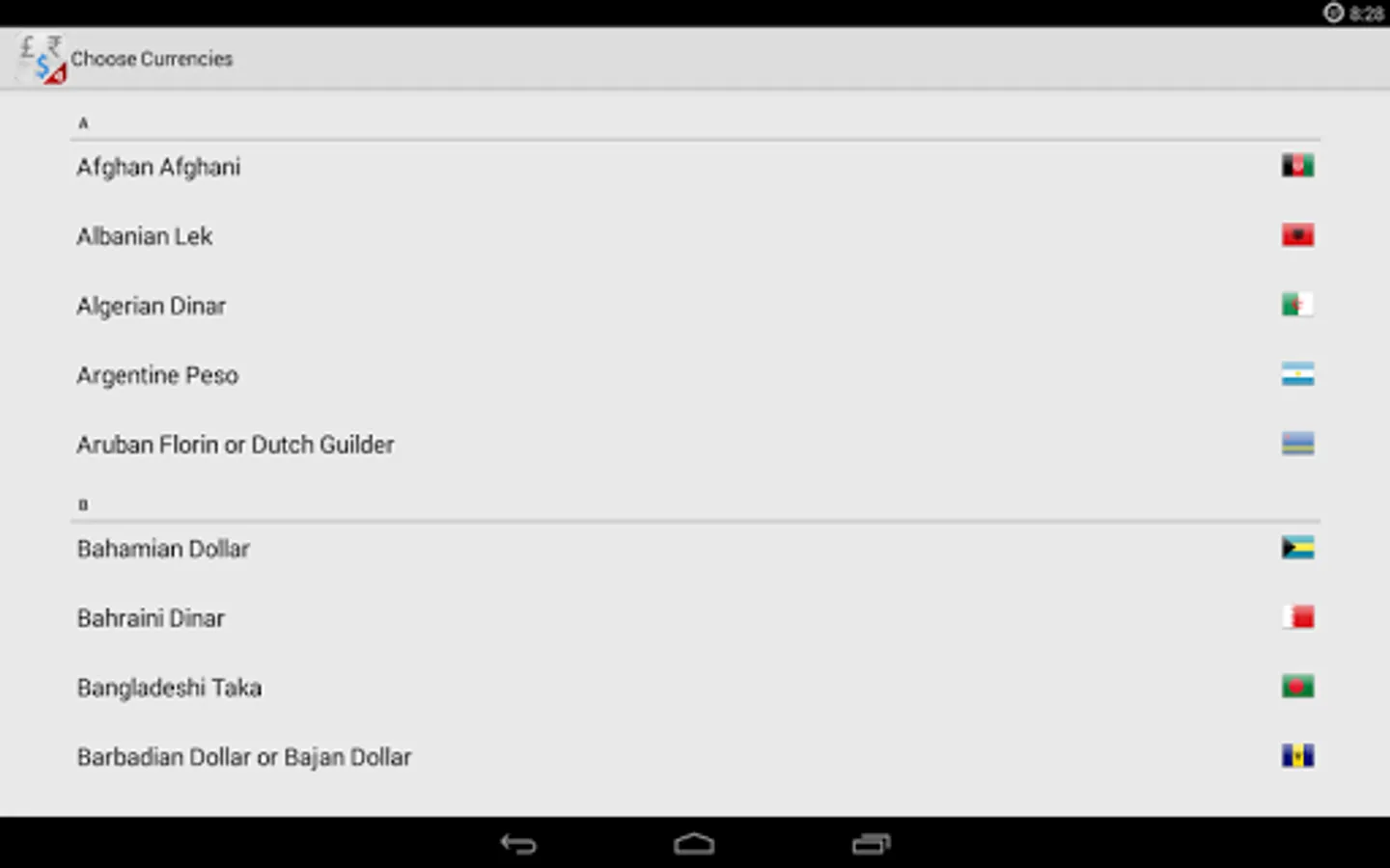 - Easily search currency by code or description