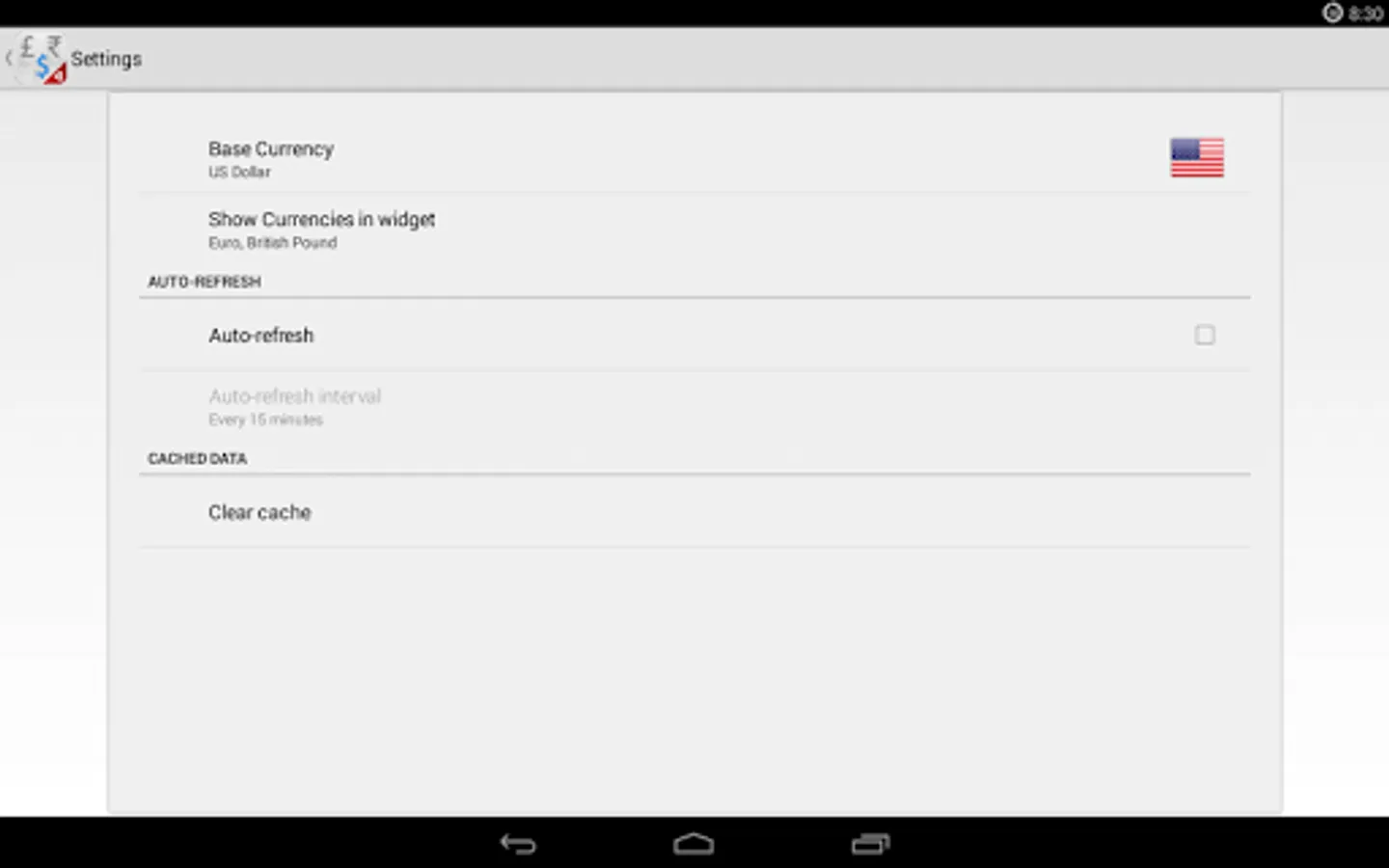 - Beautiful home screen widget displaying currency rates