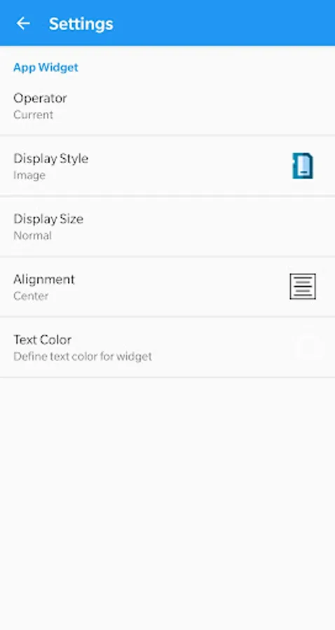 Either from menu options OR tapping on to the widget itself will open the "configuration screen". You can customize the widget properties like alignment, display style, text color, image size etc.