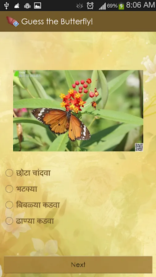 "Guess the Butterfly" is an image based butterfly identification quiz / trivia game with butterfly names in multiple languages (like English, Marathi).