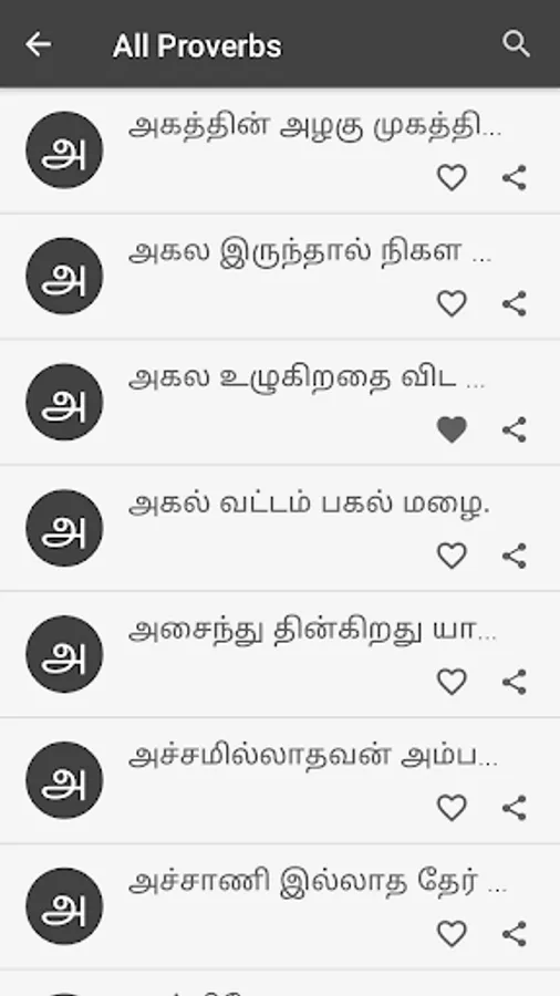 3. Ability to add proverb as favorite or share with different applications using context menu.