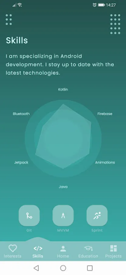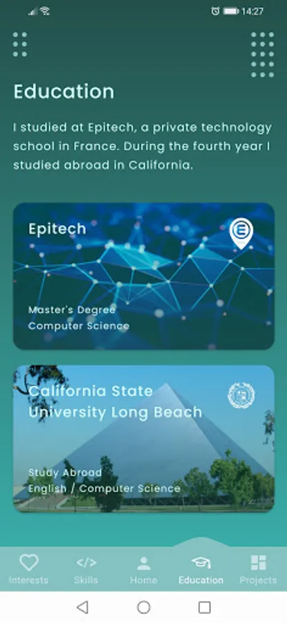 Through this application you will learn in an interactive way about my educational and professional history, technologies that I use in my developments and what I enjoy to do in life.