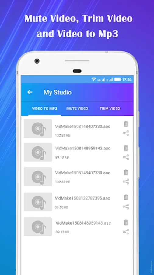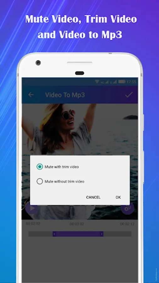Convert any Video file to Audio file in MP3 format with Video to MP3 converter. Remove Audio from Video(Create Mute Video). Trim Video of any format, size & duration with same quality Output. Mix Audio with Video and Add Audio to Video.