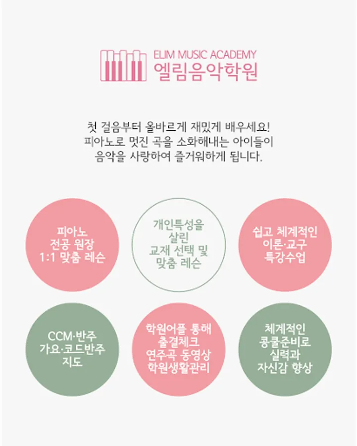 Elim Music Academy Kimcheon delivers your child's performance and progress through the app.