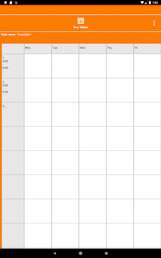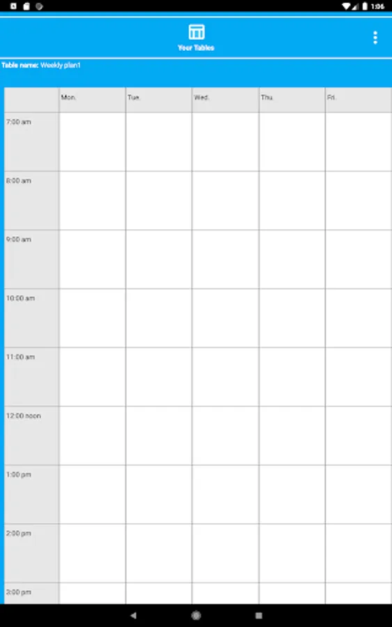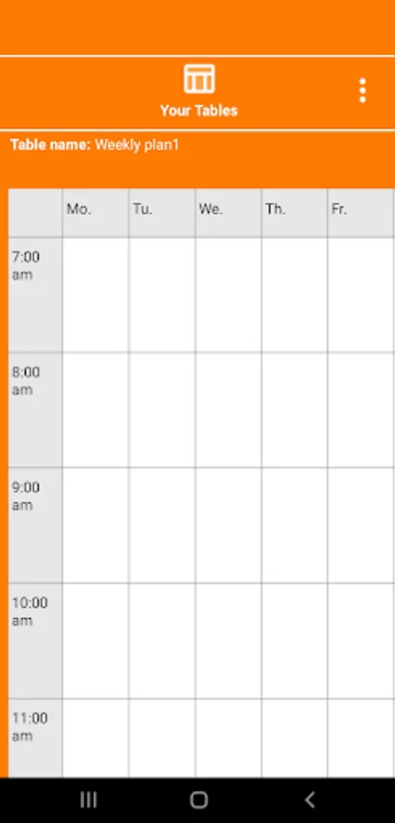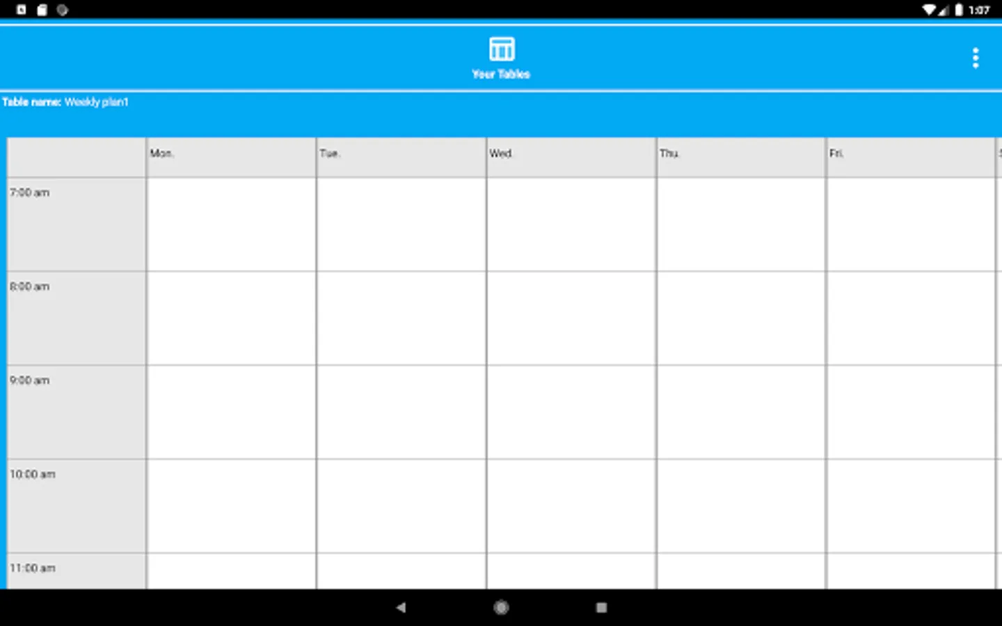Finally! The perfect app to create table notes. Perfect if you need to create a Simple Timetable, Schedule, Weekly plan, Daily plan, Working plan, Task Scheduler, Task Manager. Useful for busy students, business owners, freelancers and professionals who need an easy way to edit a time table sheet.