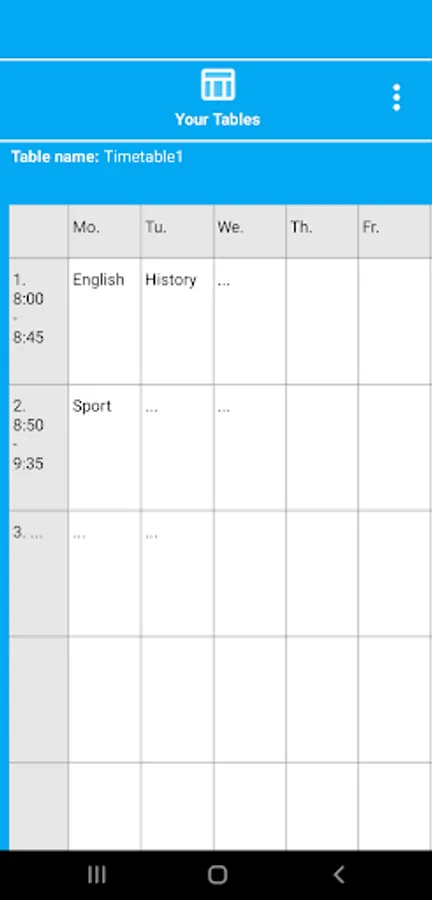 Simply touch the table fields and write the desired school subject, or other notes, directly into a field. The table templates are created in such a way that you have absolute freedom and can enter everything.
