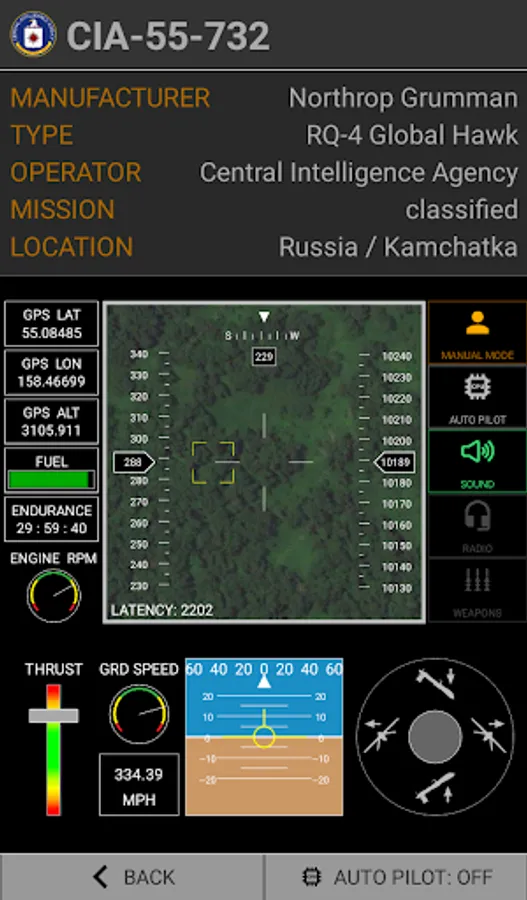 An FPV client app for unmanned aerial systems (UAVs or Unmanned Air Vehicles) such as Northrop Grumman RQ-4 Global Hawk, General Atomics MQ-1 Predator, MQ-9 Reaper and many more.