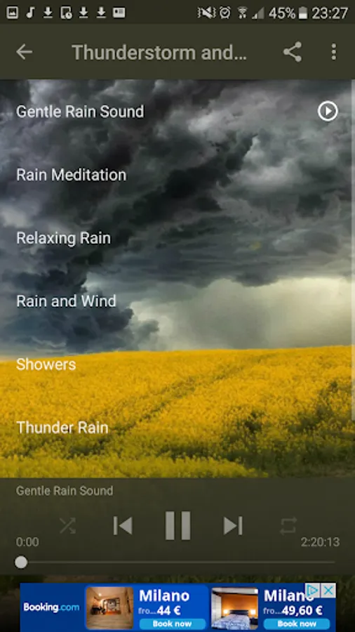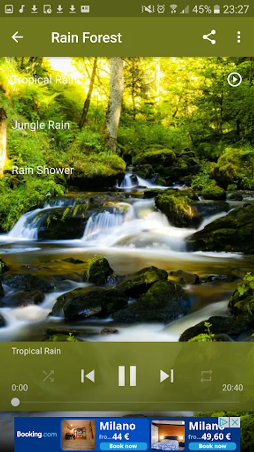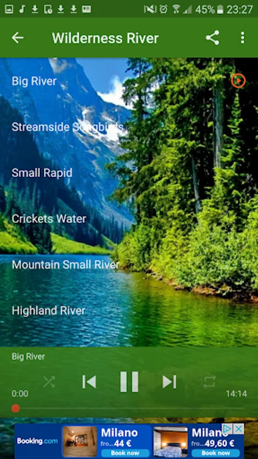 For every environment you will find different sounds of nature with different durations, from 20 minutes up to 3 hours. You can safely repeat the audio track automatically for endless relaxation.