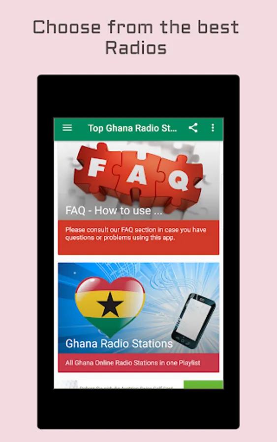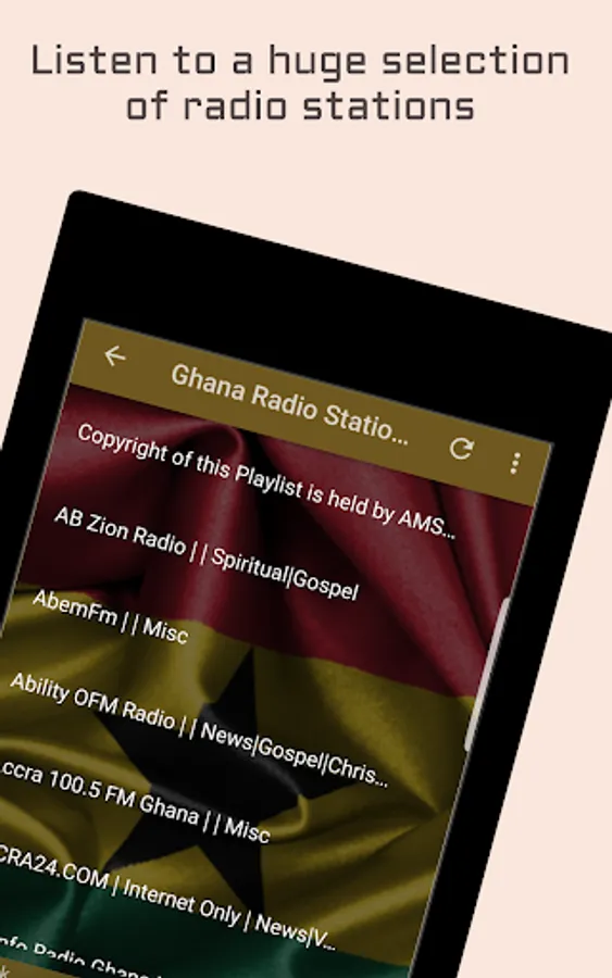 Listen to top Ghana Music, Talk and News on your android device. Ghana Radio is sorted by Genres.