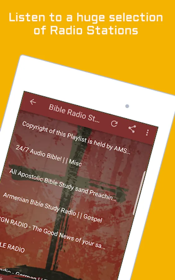 Listen to top Bible broadcasts, ministry shows, audio sermons streaming and more christian bible radio stations on your android device. English language only!