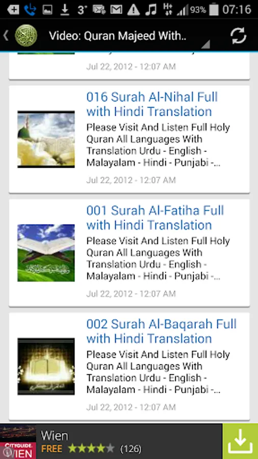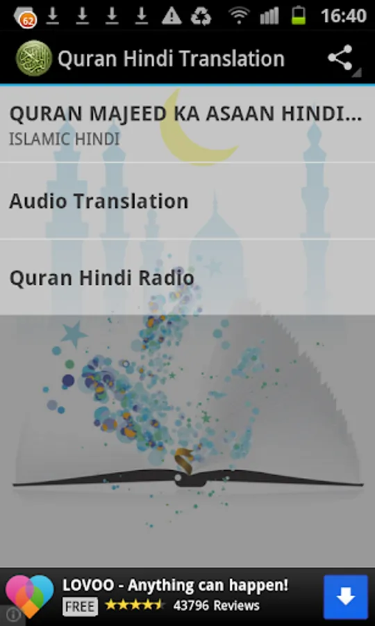 This App is your unique mobile source for high quality MP3 translations and text translation of the meanings of the Qur'an in Hindi.
