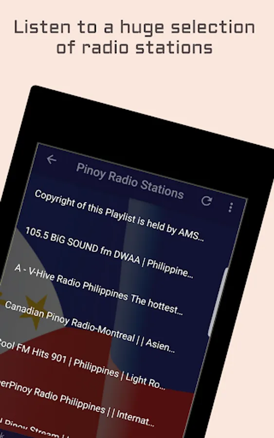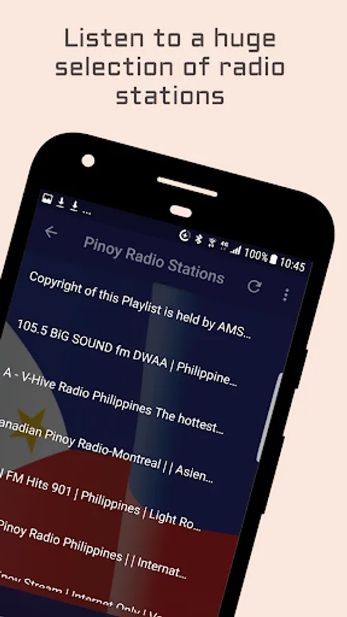 Listen to top Pinoy Music from the Philippines and around the world on your android device. Now over 40 live streams!