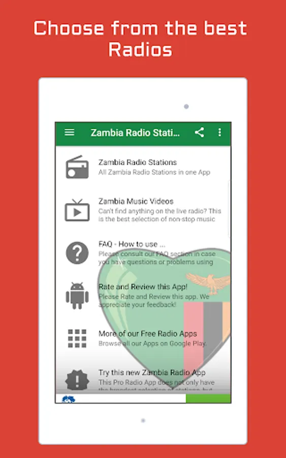 Listen to top Zambia Music and News on your android device with the best Free Internet Radio Stations. Get access to the best Radio Stations for FREE!